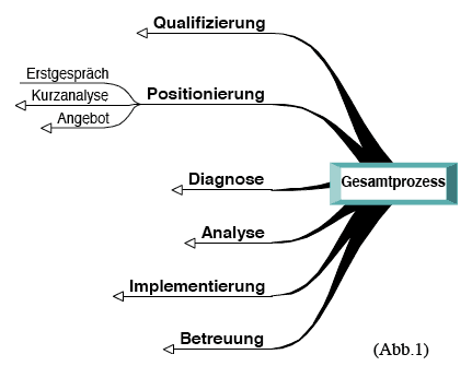 Zur Erstellung eines konkreten Angebotes bzw. Festpreisangebotes ist von Fall zu Fall auch eine detailliertere Kenntnis der Kernprozesse ihres Unternehmens erforderlich. Je nach Unternehmensgröße dauert diese kostenpflichtige Leistung zwei bis vier Tage, die wir in Ihrem Unternehmen verbringen. Dokumentation, Analyse- und Lösungsansätze erhalten Sie selbstverständlich zu Ihrer Verwendung.